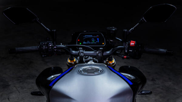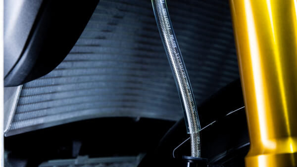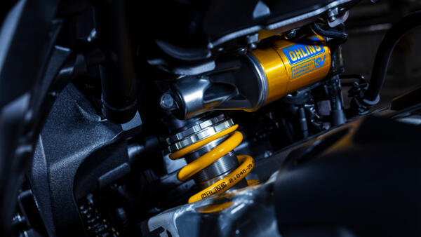 Cette moto sportive épurée, brutale et emblématique, est le premier modèle au monde à être équipé de la toute nouvelle suspension contrôlée électroniquement à six modes développée par Öhlins. En mode semi-actif, l’amortissement est automatiquement ajustée en fonction des conditions de pilotage, ce qui confère plus de précision au châssis lors du freinage, de l’accélération et dans les virages.